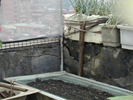 頂樓之圍牆亦出現寬1公分之裂縫。