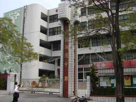 圖9-2 西湖國中倫理樓:於76年以後設校建造。為四層樓高走廊懸挑之教室。數棟教室以伸縮縫連成ㄇ字形。 |