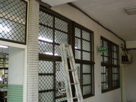 台北市西湖國中(圖9-1)的倫理樓,於76年以後設校建造。為四層樓高走廊懸挑之教室(圖9-2)。數棟教室以伸縮縫連成ㄇ字形。樓版底面普遍有很長的裂縫,應是起因於保護層不足,水氣接觸鋼筋而引起繡蝕膨脹引起。部分樓版因有滲水問題,導致保護曾有脫落之虞,必須加以修補。許多梁有細微之垂直向與斜向裂縫。但以上現象應非地震引起(圖9-3)。
