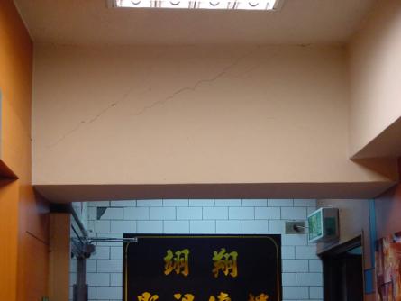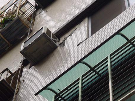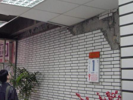 圖5 永吉路181號之大樓,非結構RC牆與小梁於地震下分離,並有局部磁磚剝落 。 |