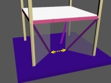 - 圖6:投影在樓板面上如上圖,紫色材料所圍成三個封閉空間,違反了須留下5公分以上距離作為出入通道的規定。