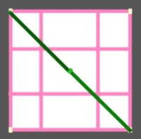 - 圖3:在樓板面的投影如上圖,綠色部分將佔滿整個對角線,違反了須留下5公分以上距離作為出入通道的規定。