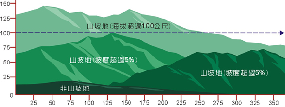 肇因於造山運動,臺灣地區地質結構複雜多變,地勢高聳崎嶇,有超過百分之七十三的地表面積的屬於山坡 地 (海拔高度超過100公尺,或未超過100公尺但坡度達5%以上的區域)。山坡地如果位處地層結構破碎帶,逢豪雨 或地震,地理環境容易發生大變遷,天然災害發生在山坡地的機率遠比平地為大。 除了自然因素外,山坡地地層的穩定狀態,也受到人為的濫墾、濫建等因素影響,而造成邊坡破壞、土石流 等常見的山坡地地質災害。 |