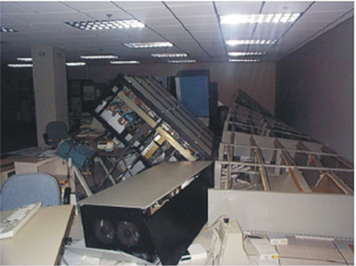 未固定好的櫥櫃在地震中倒塌,相當危險