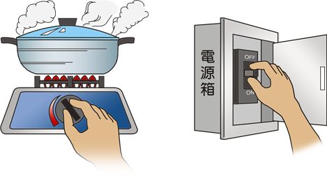 1. 熄滅正在使用中的火源,並關閉瓦斯開關。 |