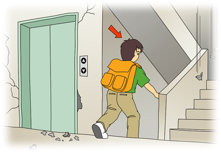4. 如果判斷可以及時逃到空曠處,立刻離開屋內(切忌搭乘電梯);如果判斷來不及逃離屋內,則就近躲避 在相對較安全的角落空間。 |
