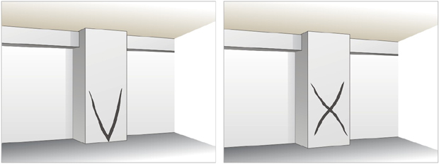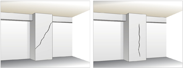 .柱子有連續的X形、V形、倒V形、斜向或垂直向開裂